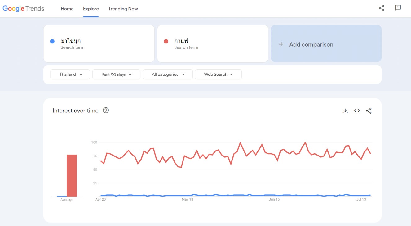 เจ้าของร้านขนาดเล็ก พอได้ยินคำว่า Data ก็อาจจะคิดว่าต้องลงทุนสูง ทำความเข้าใจยาก คุณกำลังคิดผิด! ในเมื่อเราใช้ Google เสิร์ชหา Keyword ต่าง ๆ ทุกวันอยู่แล้ว การเปิดใจลองใช้ Google Trend ก็ไม่ใช่เรื่องยาก ทุกวันนี้การที่เราทำธุรกิจโดยไม่รู้พฤติกรรมกลุ่มเป้าหมาย อาจทำให้เราพลาดโอกาสหลาย ๆ อย่างได้ ยกตัวอย่างง่าย ๆ  เปาเปาอยากเปิดร้านชาไข่มุก จึงลองใช้ Google Trends ดูข้อมูลว่าในช่วง 1 ปีมานี้ มีคนเสิร์ช keyword ใน Google คำว่า “ชาไข่มุก” มากแค่ไหน จึงลองเปรียบเทียบความนิยมของการเสิร์ชเครื่องดื่มชนิดอื่น เช่น  “กาแฟ” และพบว่ามีการเสิร์ชหาคำว่า “กาแฟ” มากกว่าในจังหวัด A แต่ “ชาไข่มุก” กลับมียอดการเสิร์ชมากกว่าในจังหวัด B ทำให้เปาเปามีข้อมูลว่าควรลงทุนกับเครื่องดื่มประเภทใด ในพื้นที่ไหนบ้างจึงจะมีโอกาสสร้างยอดขาย