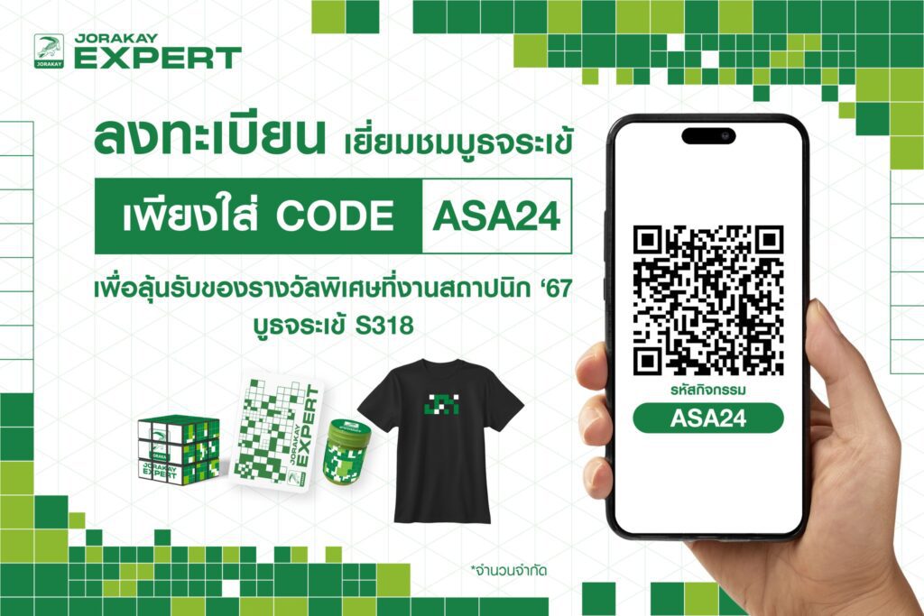 พิเศษ! ลงทะเบียนเข้าร่วมงานสถาปนิก’67 กับจระเข้ รับแต้มพิเศษจาก Jorakay Family เพียง Scan QR Code ลงทะเบียนและใส่รหัสกิจกรรม “ASA24” เพื่อลุ้นรับของรางวัลพิเศษ เฉพาะในงานสถาปนิก’67 เท่านั้น