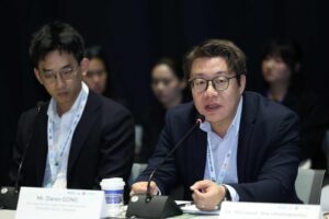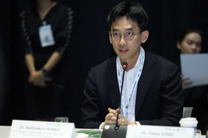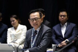 วุฒิกร อนุศาสน์อมรกุล ผู้จัดการฝ่ายนวัตกรรมและกลยุทธ์ธุรกิจพลังงาน บริษัท ปตท.จำกัด (มหาชน) กล่าวถึงความท้าทายแบบคู่ขนานของประเทศไทย ในการบริหารจัดการทั้งความเสี่ยงทางกายภาพจากสภาพภูมิอากาศ และความเสี่ยงจากการเปลี่ยนผ่าน โดยปตท.มองว่า แม้พลังงานหมุนเวียนจะเป็นอนาคต แต่ความมั่นคงทางพลังงานยังคงเป็นภารกิจสำคัญสูงสุด จึงมุ่งเน้นการเปลี่ยนผ่านโดยใช้ก๊าซธรรมชาติเป็นเชื้อเพลิงหลัก ควบคู่ไปกับการพัฒนาเทคโนโลยีสำคัญอย่างโครงการนำร่องดักจับและกักเก็บคาร์บอนที่แหล่งอาทิตย์ (Carbon Capture and Storage – CCS) ได้บรรจุไว้ในเป้าหมายการการดำเนินงานด้านการเปลี่ยนแปลงสภาพภูมิอากาศของประเทศ (Nationally Determined Contributions – NDC) ฉบับปรับปรุงใหม่แล้ว