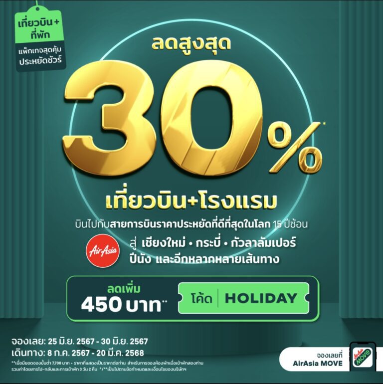 AirAsia MOVE ร่วมฉลองรางวัล Skytrax พร้อมเผยเทรนด์ธุรกิจโรงแรม เน้นใกล้ชิดธรรมชาติ-วัฒนธรรม จองแพ็กเกจเที่ยวบิน+โรงแรมลดแรงสูงสุด 30% ใส่โค้ดลดเพิ่ม 450 บาท
