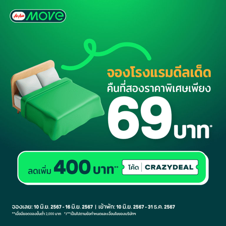AirAsia MOVE จับมือโรงแรมพันธมิตรทั่วไทย มอบดีลสุดพิเศษจาก 100 โรงแรม เอาใจสายเที่ยว คืนที่ 2 จ่ายเพียง 69 บาท