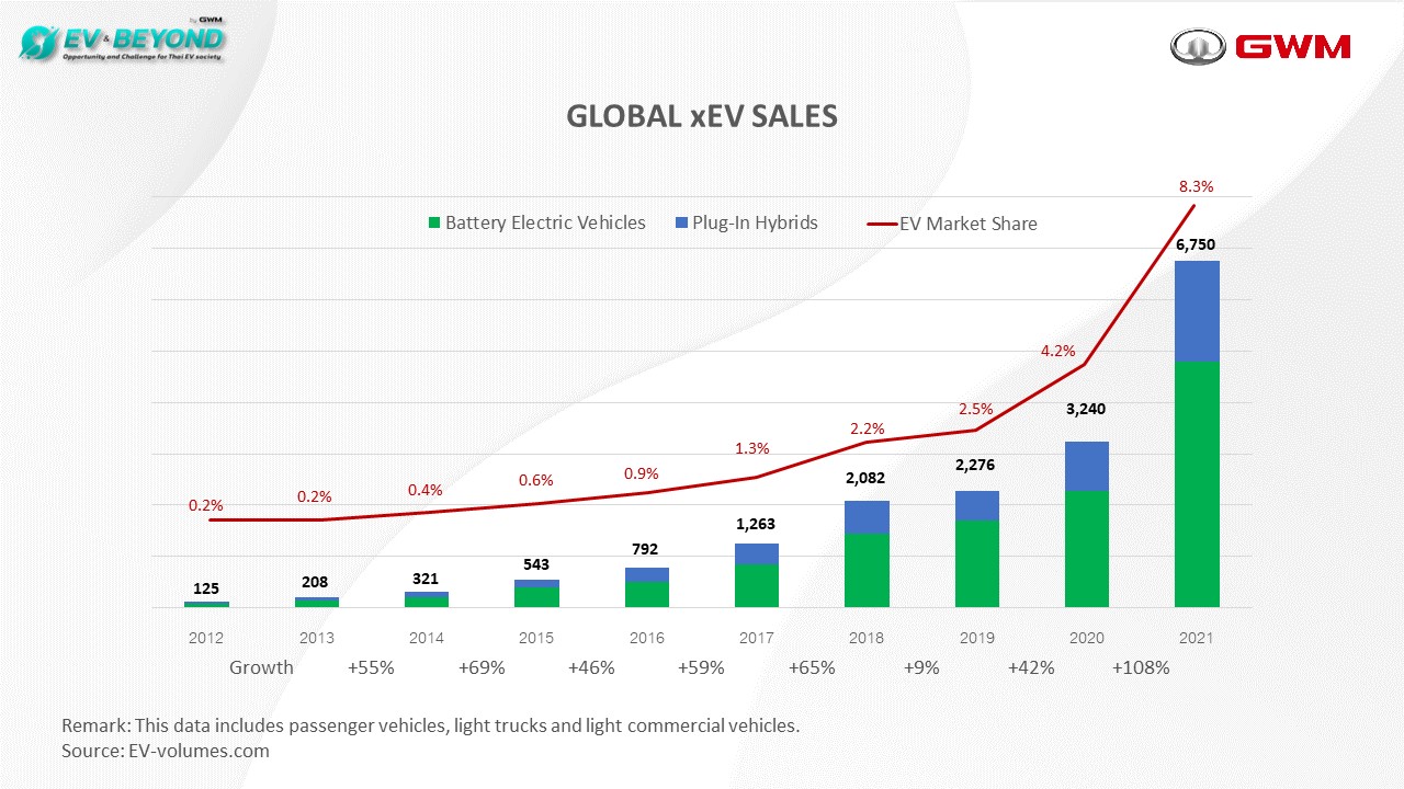 แม้ว่าภาพรวมของอุตสาหกรรมยานยนต์ทั่วโลกจะเต็มไปด้วยอุปสรรคและความท้าทายดังที่กล่าวมา แต่ผู้เชี่ยวชาญจากหลากหลายแวดวงมีความคิดเห็นตรงกันว่ายังคงมีโอกาสและปัจจัยบวกอีกมากมายที่ช่วยให้ทั้งอุตสาหกรรมยังสามารถเติบโตต่อไปได้ในระยะยาว อาทิ การประกาศนโยบายสนับสนุนที่ชัดเจนจากภาครัฐซึ่งช่วยเพิ่มความน่าสนใจให้กับรถยนต์ไฟฟ้าและราคาน้ำมันในตลาดโลกที่เพิ่มขึ้น นอกจากนั้นผู้ผลิตรถยนต์ไฟฟ้ายังต่างเร่งขยายสถานีอัดประจุไฟฟ้า ศูนย์บริการและซ่อมบำรุงให้ครอบคลุมพื้นที่ทั่วประเทศกันอย่างต่อเนื่อง ช่วยเพิ่มแรงจูงใจให้ผู้บริโภคเกิดความสนใจรถยนต์ไฟฟ้าพร้อมกับส่งผลให้ความนิยมของรถยนต์สันดาปค่อยๆ ลดลงตามลำดับ จึงนับเป็นโอกาสดีสำหรับผู้ประกอบการในแวดวงยานยนต์ที่กำลังพิจารณาเข้าสู่ตลาดรถยนต์พลังงานไฟฟ้า เช่นเดียวกันกับอุตสาหกรรมที่เกี่ยวข้องอย่างแบตเตอรี่และอะไหล่ที่คาดการณ์ว่าจะมีการเปลี่ยนแปลงในทิศทางบวก โดยในปี 2565 เกรท วอลล์ มอเตอร์ ในฐานะผู้นำด้านยานยนต์ไฟฟ้าคาดว่ายอดขายของรถยนต์ไฟฟ้า (ไฮบริด ปลั๊กอิน-ไฮบริด และรถยนต์ไฟฟ้า 100%) ในปี 2565 จะอยู่ที่ประมาณ 82,000 คัน หรือ 10 เปอร์เซ็นต์ของยอดขายรถยนต์โดยรวม และในจำนวนนี้จะเป็นรถยนต์ไฟฟ้า 100% สูงถึง 12,300 คัน หรือคิดเป็น 15 เปอร์เซ็นต์ของยอดขายรถยนต์ไฟฟ้าทั้งหมด