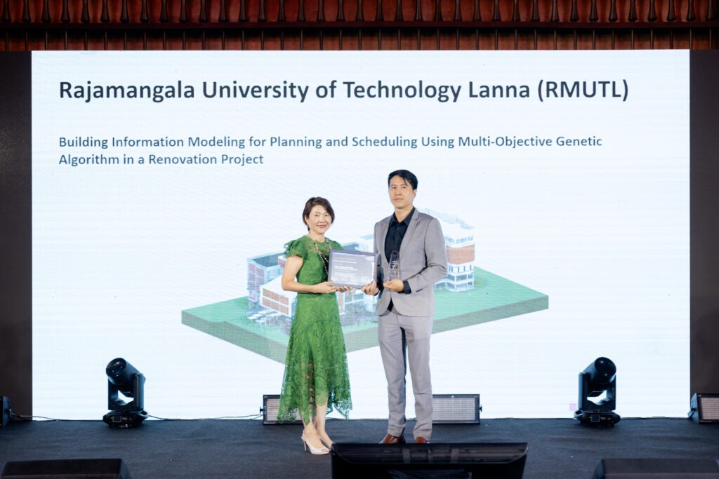 Future Pillar of The Year Award ผู้ได้รับรางวัลคือ มหาวิทยาลัยเทคโนโลยีราชมงคลล้านนา (RMUTL) สำหรับโครงการ “Building Information Modeling for Planning and Scheduling Using Multi-Objective Genetic Algorithm in a Renovation Project.”