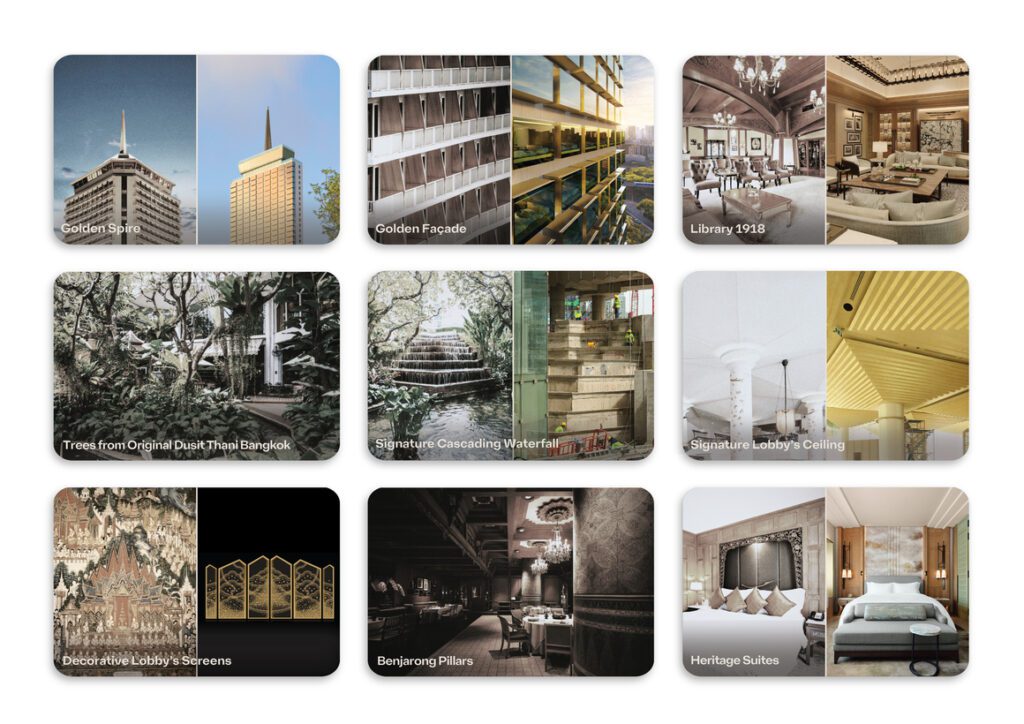 การอนุรักษ์มรดกแห่งความทรงจำอันทรงคุณค่าที่เปี่ยมไปด้วยความหมายเหล่านี้ จะเป็นภาพสะท้อนถึงความมุ่งมั่นของโรงแรม ดุสิตธานี กรุงเทพ ที่ต้องการสานต่อเรื่องราวแห่งความใส่ใจในทุกรายละเอียด เพื่อเชื่อมโยงมรดกทางความทรงจำให้คงอยู่บนรากฐานของความแข็งแกร่งทางประวัติศาสตร์และวัฒนธรรมอันงดงามของไทย สู่การหลอมรวมกับตัวตน อัตลักษณ์ และการเปลี่ยนแปลงของยุคสมัย เพื่อนำเสนอจุดยืนแห่งความเป็นไทยร่วมสมัยของ “หมุดหมายกรุงเทพฯ” พร้อมมอบประสบการณ์ไลฟ์สไตล์ที่ยอดเยี่ยมเหนือระดับในทุกมิติ ควบคู่ไปกับการบริการอันเต็มไปด้วยจิตวิญญาณแบบ Gracious Hospitality สมกับเจตนารมณ์ของผู้ก่อตั้งในการสะท้อนความเป็นไทยสู่สากล และนี่คือองค์ประกอบที่สำคัญของโครงการมิกซ์ยูสชั้นนำใน Super Core CBD ของกรุงเทพฯ Dusit Central Park โดยโรงแรมดุสิตธานี กรุงเทพ จะกลับมาเปิดให้บริการในเดือนกันยายนนี้ พวกเราชาวดุสิตพร้อมต้อนรับทุกท่าน