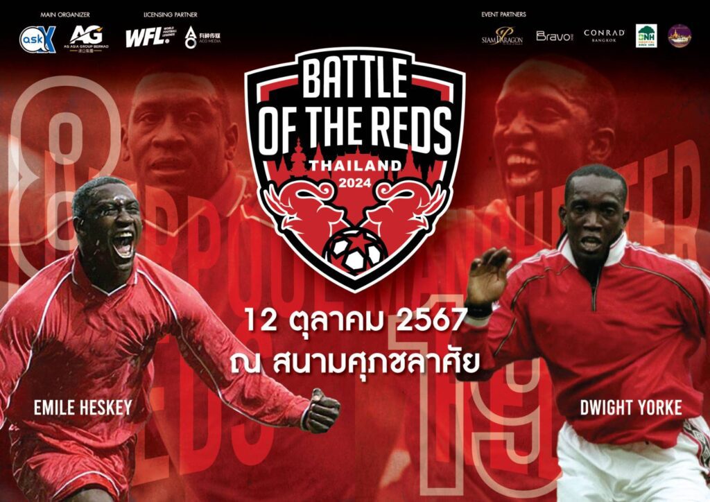 บริษัท อาส์คมี เอ็กซ์ จำกัด เตรียมพร้อมระเบิดความมันกับกิจกรรมการแข่งขันฟุตบอลนัดพิเศษ “แบทเทิล ออฟ เดอะ เรด ไทยแลนด์ 2024” (Battle of the Reds Thailand 2024) ศึกแห่งตำนานแดงเดือดที่จะยกขบวนนักเตะแข้งทองผู้สร้างชื่อให้กับสองสโมสรฟุตบอลซึ่งได้รับการยกย่องมากที่สุดของอังกฤษ “แมนเชสเตอร์ ยูไนเต็ด เรด” และ “ลิเวอร์พูล เรด” มาลงสนามฟาดแข้งให้แฟนฟุตบอลชาวไทยได้เชียร์ทีมที่รักและนักเตะในดวงใจอย่างใกล้ชิด ใจกลางกรุงเทพมหานคร ในวันที่ 9-13 ตุลาคม 2567