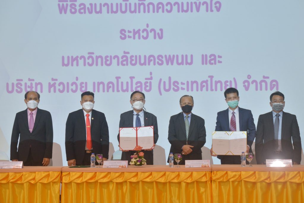 ในฐานะที่เป็นพันธมิตรเชิงกลยุทธ์ระหว่างอุตสาหกรรมไอซีทีกับภาคการศึกษา พิธีลงนามบันทึกความเข้าใจครั้งนี้ได้จัดขึ้นที่จังหวัดนครพนม เมื่อวันที่ 6 มีนาคม 2565 โดยมี ดร. พรหมสวัสดิ์ ทิพย์คงคา รักษาการอธิการบดี มหาวิทยาลัยนครพนม และนายจัสติน ฟ่าน รองประธานอาวุโสฝ่ายการจัดจำหน่ายโซลูชันและการตลาด กลุ่มธุรกิจเอ็นเตอร์ไพรส์ บริษัท หัวเว่ย เทคโนโลยี่ (ประเทศไทย) จำกัด เป็นผู้ร่วมลงนาม และมีศาสตราจารย์ ดร. กระแส ชนะวงศ์ นายกสภามหาวิทยาลัยนครพนม รวมถึงเจ้าหน้าที่ระดับอาวุโสของมหาวิทยาลัยท่านอื่น ๆ ร่วมเป็นสักขีพยาน