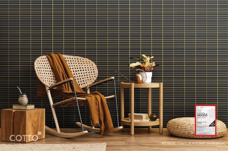 หากต้องการสร้างสรรค์บางพื้นที่ให้มีโดดเด่นตามสไตล์ส่วนตัวที่ไม่ซ้ำแบบเดิม ๆ ของสมาชิกในบ้าน การเลือกใช้กระเบื้องตกแต่งขนาดเล็กเป็นสิ่งที่ตอบโจทย์ ใช้กาวซีเมนต์ คอตโต้ (สีเขียว)สำหรับกระเบื้องพอร์ชเลน ขนาดเล็ก เนื้อกาวเหนียวติดแน่น ดูดน้ำต่ำ ลดการหลุดล่อน ทนทาน ใช้งานได้ยาวนาน และกาวยาแนว คอตโต้ ยับยั้งแบคทีเรีย (แดง) สูตรยับยั้งแบคทีเรีย ป้องกันราดำ ทนกรดได้ 3 เท่า ใช้กับร่องกระเบื้องขนาด 2-10 มม. มีสีให้เลือกถึง 29 เฉดสี สามารถสร้างสรรค์พื้นที่นั่งเล่นด้วยสไตล์ Contrast การเลือกใช้กาวยาแนวสีเหลืองเป็นเส้นตัดกับกระเบื้องตกแต่งสีดำ ทำให้ผนังห้องดูโดดเด่น มีลูกเล่น จะดูมุมไหนก็ชวนมองไม่น่าเบื่อ ให้ทุกคนได้สนุกกับสีสันใหม่ในบ้าน
