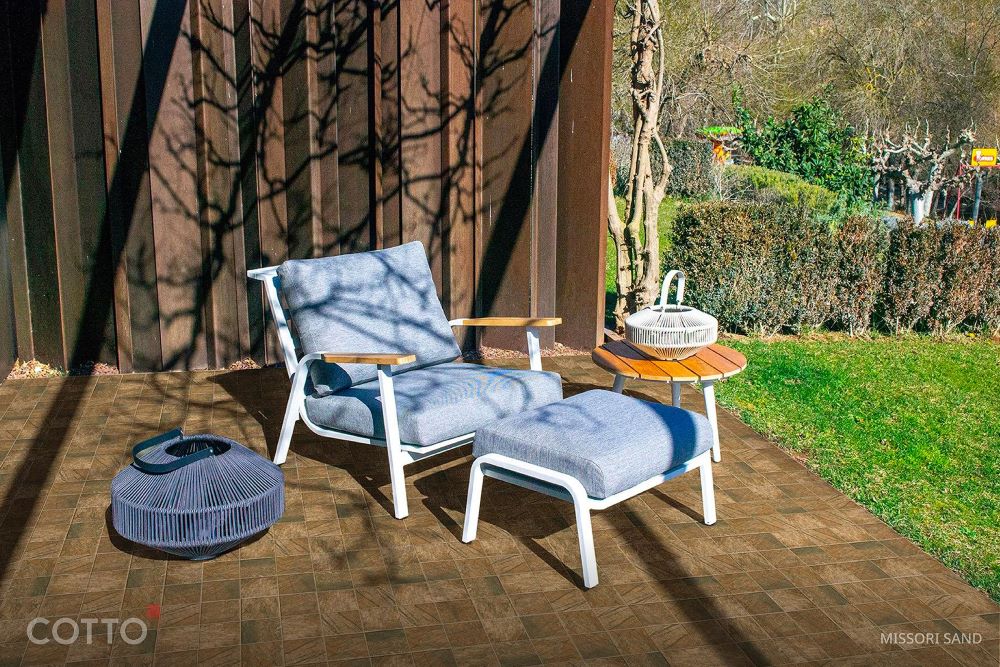 มุมแอบชิลของแม่ มักจะเป็นมุมโปรดเล็ก ๆ ที่อาจใช้พักผ่อนสั้น ๆ ส่วนตัว หรือทำกิจกรรมร่วมกันกับสมาชิก การตกแต่งพื้นที่นั่งเล่นนอกบ้าน สำหรับรับลม  ชมวิว  โดยจัดมุมข้างบ้านให้แม่ได้นั่งจิบเครื่องดื่มรับแดดยามเช้า เพิ่มวิตามินดีที่สร้างได้จากผิวหนังในการสัมผัสแสงแดดอ่อน อย่างน้อย 15 นาที  ช่วยเสริมภูมิคุ้มกัน เสริมสร้างกระดูก เพิ่มความแข็งแรงของกล้ามเนื้ออีกด้วย การเพิ่มความสวยของพื้นที่ความสุขเล็ก ๆนี้ ด้วยกระเบื้องตกแต่งภายนอก ลายมิซโซรี่ ซีรี่ย์ ที่ได้รับการออกแบบลวดลายจากหินธรรมชาติของประเทศอิตาลี  ผ่านการกัดเซาะจากน้ำทะเลทำให้เนื้อหินมีลายเส้นและเฉดสีที่สวยงามอย่างน่าพิศวง   อาจเลือกเก้าอี้อาร์มแชร์ดีไซน์สวยนุ่มสบาย พนักพิงโอบรับสรีระ พร้อมที่รองขา  ให้แม่ได้นั่งสบายทุกสัมผัส  มุมดีๆ แบบนี้นอกจากทำให้แม่ผ่อนคลายความเมื่อยล้า ยังช่วยทำให้สุขภาพดีเพิ่มขึ้นอีกด้วย