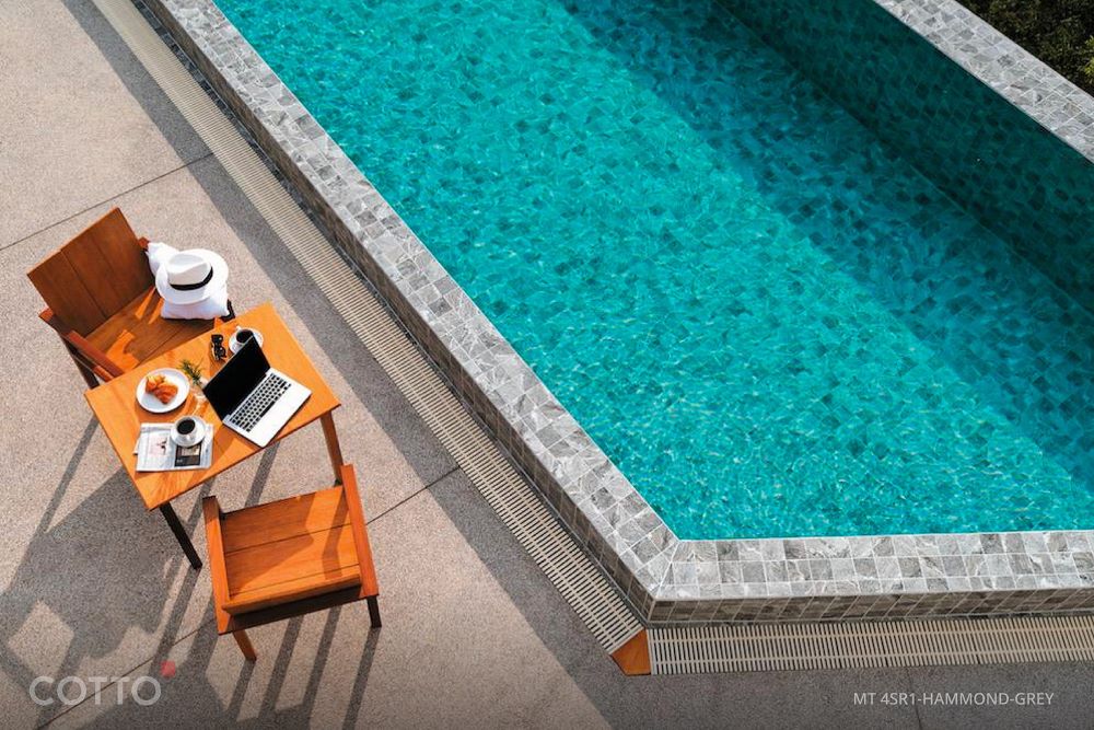 ปัจจุบัน บ้านเดี่ยวหลายหลังมักเพิ่มเติมพื้นที่สำหรับออกกำลังกาย เล็กบ้าง ใหญ่บ้างตามงบประมาณ และความพึงพอใจ การเนรมิตพื้นที่ด้านข้างให้เป็นสระว่ายน้ำส่วนตัวเล็ก ๆ ก็เป็นอีกแนวทางหนึ่งที่กำลังได้รับความนิยมเพิ่มมากขึ้น เพราะการออกกำลังกายในน้ำส่งผลดีต่อแรงกายมากกว่าที่คิดและสามารถเล่นได้ในทุกช่วงวัย แล้ว หากดีไซน์พื้นที่สระว่ายน้ำให้ถูกใจคุณแม่คนสวยแล้ว ก็น่าจะทำให้พื้นที่ความสุขจุดนี้มีความหมายมากกว่าที่คิด  และอาจกลายเป็นแลนด์มาร์คสวย ๆ ให้คุณแม่เก็บบันทึกช่วงเวลาความสุขมาแบ่งปันให้ชื่นชมกันได้ด้วย การเลือกใช้วัสดุที่เหมาะสมในการตกแต่ง โดยเฉพาะสระว่ายน้ำ แน่นอนว่าคงต้องเป็นกระเบื้องตกแต่งชิ้นเล็กหรือกระเบื้องโมเสก Pool Tile ปูสระว่ายน้ำลายแฮมมอนซีรี่ย์  ลวดลายที่เลียนแบบหินธรรมชาติได้อย่างสวยสมจริง เส้นริ้วเหมือนคลื่นทะเล  เฉดสีเข้มอ่อนตามจังหวะของชั้นหินที่ทับถมกันตามธรรมชาติ  มาอวดลวดลายความงดงามให้พื้นที่ความสุขของคุณแม่ สนุกมากกว่าที่เป็น และให้ผลที่ดีกับสุขภาพในระยะยาว