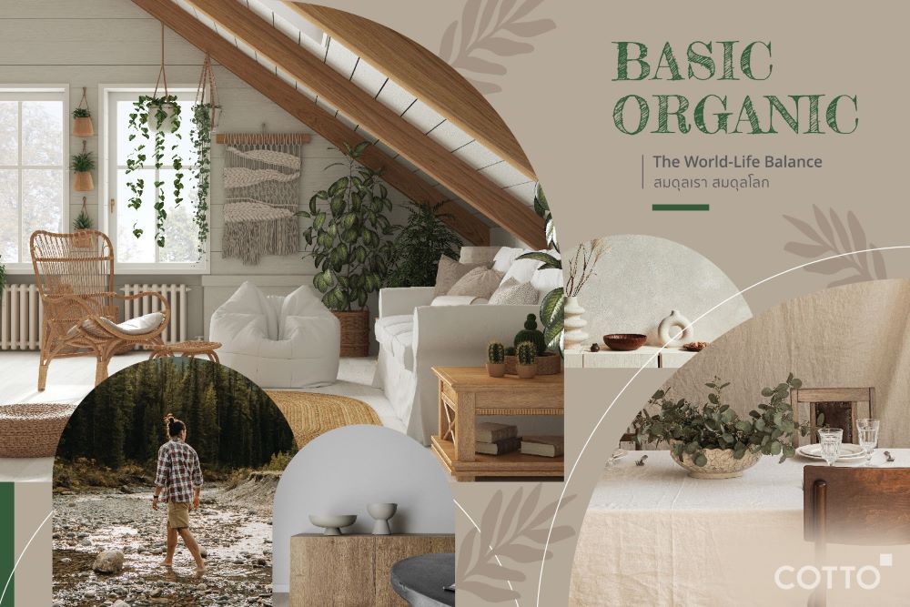 กระเบื้องแบรนด์ COTTO ภายใต้ SCG Decor  ในฐานะผู้นำเทรนด์วัสดุตกแต่ง ที่ให้ความสำคัญต่อการพัฒนาผลิตภัณฑ์ให้ตอบสนองต่อเทรนด์ ความนิยม หรือไลฟ์สไตล์ของลูกค้ามาอย่างต่อเนื่องบนพื้นฐานการผลิตด้วยเทคโนโลยีนำสมัย ผสมผสานกับแนวคิดการพัฒนาผลิตภัณฑ์เพื่อความยั่งยืนมาอย่างต่อเนื่อง   จึงพัฒนาผลิตภัณฑ์ที่แสดงให้เห็นถึงมุมมองการใช้ชีวิตที่เชื่อมต่อกับธรรมชาติ  ในรูปแบบที่เรียกว่า Basic Organic คือ สมดุลเรา สมดุลโลก ด้วยการสร้างความสมดุลให้ธรรมชาติมาเป็นส่วนหนึ่งของชีวิตและเป็นส่วนประกอบของการตกแต่งที่อยู่อาศัย ในพื้นที่ต่าง ๆ ที่สอดรับกับเจนเนเรชั่น X และ Y ที่วันนี้ COTTO นำสไตล์การออกแบบในพื้นที่ต่าง ๆ  มา เป็นแนวทางให้ชมกัน