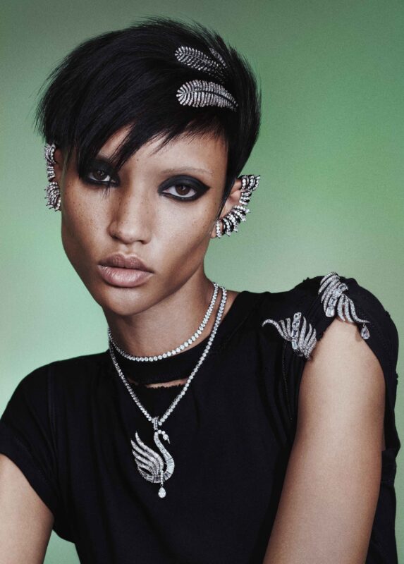 Vienna Collection รังสรรค์ขึ้นด้วยเทคนิคระดับไฮจิวเวลรี่และการฝังอัญมณีอย่างประณีต ถ่ายทอดดีไซน์สุดโดดเด่นผ่านโชกเกอร์ที่แฝงกลิ่นอายพังก์ ต่างหูเอียร์คัฟที่มีรูปทรงพลิ้วไหวดั่งขนนก ไปจนถึงสร้อยคอสุดตระการตาที่ผสมผสานระหว่างคริสตัลเจียระไนทรงบาแกตต์เข้ากับดีเทลคริสตัลแบบ Pavé ในรูปทรงขนนกได้อย่างลงตัว พร้อมทั้งจี้รูปหงส์สุดพิเศษในสไตล์ ‘baguettage’ ซึ่งรังสรรค์ด้วยเทคนิค Sparkling Dance อันเป็นเอกลักษณ์ของสวารอฟสกี้ สร้างประกายระยิบระยับราวกับหงส์ที่กำลังโบยบิน