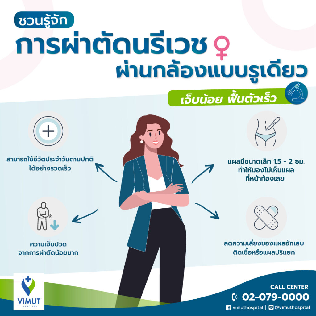 แพทย์รพ.วิมุต เผยว่าการผ่าตัดผ่านกล้องทางนรีเวชแบบรูเดียว ไม่ได้เหมาะสมกับโรคที่มีความซับซ้อนมาก เช่น พังผืดในช่องท้องและอุ้งเชิงกราน เนื้องอกมดลูกขนาดใหญ่ หรือมะเร็งระยะลุกลาม โดยรูปแบบการผ่าตัดจะขึ้นอยู่กับดุลยพินิจของแพทย์ผู้ทำการรักษา “แต่สิ่งที่อยากจะเน้นย้ำสำหรับผู้หญิงทุกคนคือ การรู้เท่าทันอาการเจ็บป่วยและเข้าพบแพทย์เพื่อตรวจคัดกรองเมื่อพบอาการผิดปกติทางนรีเวช เช่น อาการปวดประจำเดือนที่มากขึ้นเรื่อย ๆ ปวดท้องน้อยเฉียบพลันหรือปวดเรื้อรัง มีเลือดออกจากช่องคลอดนอกรอบเดือน หรือคลำพบก้อนที่ท้องน้อย เป็นต้น นอกจากนี้ ผู้หญิงควรหมั่นตรวจสุขภาพและตรวจภายในเป็นประจำทุกปี เพื่อการดูแลสุขภาพเชิงป้องกันและการใช้ชีวิตได้อย่างมั่นใจ” ผศ.นพ.วรเดช หงษ์สาคร กล่าวทิ้งท้าย