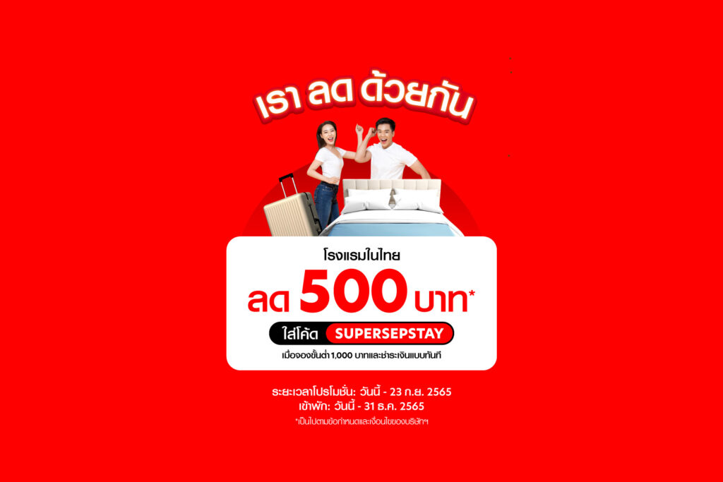 องเที่ยวช่วงปลายฝนต้นหนาว ด้วยการแจกส่วนลดโรงแรมที่พั กในประเทศไทยมูลค่า 500 บาท (เมื่อมียอดจองขั้นต่ำ 1,000 บาท) เพียงใส่รหัส “SUPERSEPSTAY” รีบเลยดีลดีๆ สุดพิเศษที่สายเที่ยวต้องห้ ามพลาดรออยู่ เฉพาะ 19-23 กันยายนนี้เท่านั้น จองเลยที่ airasia Super App -