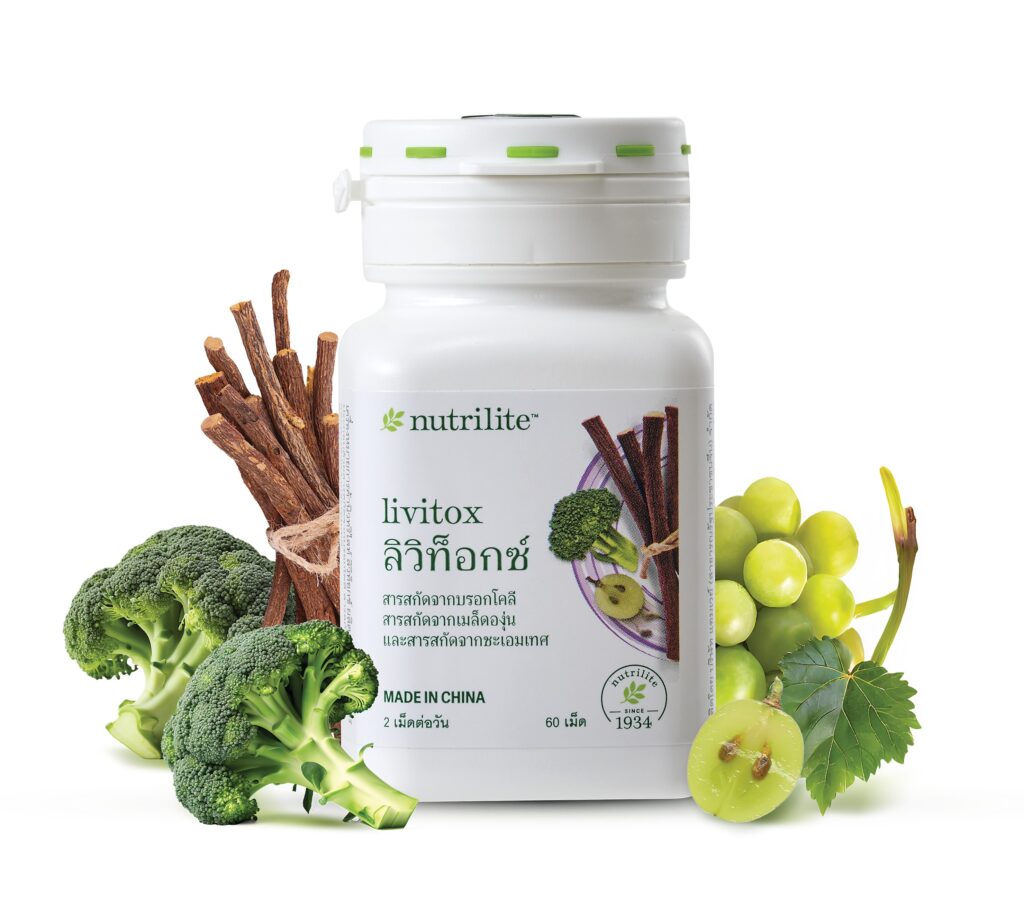 บริษัท แอมเวย์ (ประเทศไทย) จำกัด ขอแนะนำ “ลิวิท็อกซ์” (Livitox) ผลิตภัณฑ์เสริมอาหารใหม่ล่าสุด จาก นิวทริไลท์ ที่มีส่วนประกอบของสารสกัดจากพืชธรรมชาติ ภายใต้การพัฒนาผลิตภัณฑ์ อย่างต่อเนื่อง ตั้งแต่การคัดสรรวัตถุดิบ การวิจัยและค้นคว้า จนได้ผลิตภัณฑ์เสริมอาหารที่มีคุณภาพถึงมือคุณ ผลิตภัณฑ์ ลิวิท็อกซ์ ประกอบไปด้วยสารสกัดจากบรอกโคลี สารสกัดจากเมล็ดองุ่น และสารสกัดจากชะเอมเทศ มาในขนาดบรรจุภัณฑ์ 60 เม็ด รับประทานครั้งละ 1 เม็ด วันละ 2 ครั้ง พร้อมอาหาร ราคาสมาชิก 1,000 บาท ราคาขาย 1,100 บาท
