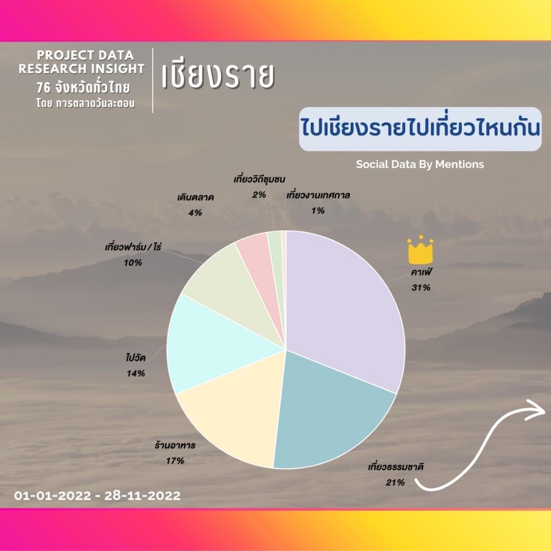 ทั้งนี้ นำร่องด้วยคอนเทนต์ 2022 เที่ยวไทย กลับมาครึกครื้น จากการใช้ Social Data เปิดข้อมูล 10 จังหวัดที่ถูกพูดถึงมากที่สุด ให้ข้อมูลประกอบการตัดสินใจในการจัดแพ็คเกจท่องเที่ยวต่างๆว่า คอนซูเมอร์วิเคราะห์จากองค์ประกอบอะไรบ้าง?? เช่น งบ ที่พัก การเดินทาง เป็นต้น