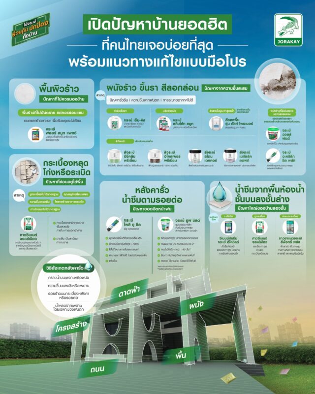จระเข้ เปิดอินไซต์ ปัญหาบ้านยอดฮิตทำคนไทยปวดหัว พร้อมแนวทางแก้ไขแบบมือโปร สานต่อแคมเปญ “ปัญหาบ้านเยอะ…จระเข้เยอะกว่า” แก้ไขทุกปัญหาคลอบคลุมทั้งงานพื้น ผนัง หลังคา ดาดฟ้าของบ้านด้วยโซลูชันที่ตอบโจทย์