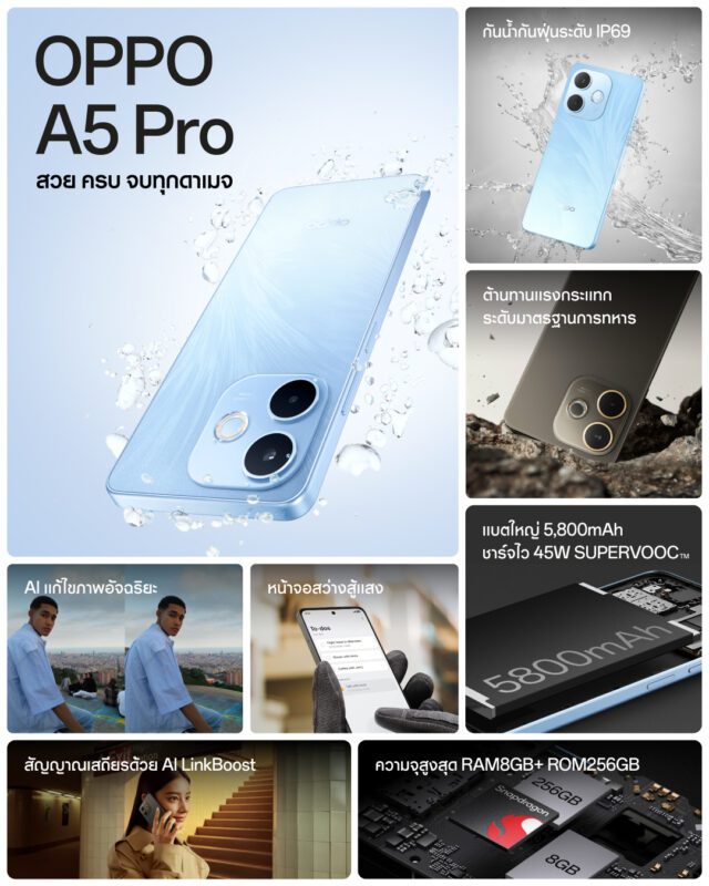 “OPPO A5 Pro” สมาร์ตโฟนที่สุดทนทาน ราคาพิเศษ 5,199 บาท