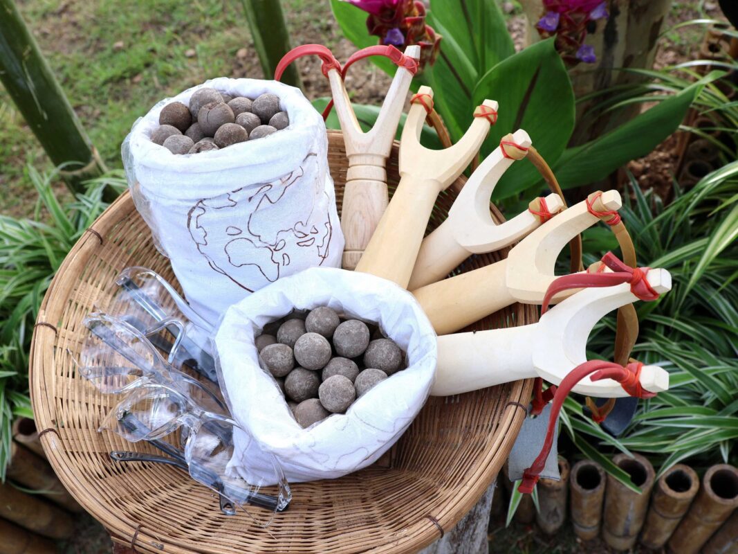 รวมถึง “Seed balls” ซึ่งเป็นอีกหนึ่งผลงานวิจัยของไบโอเทค โดย Seed balls คือการนำเมล็ดพันธุ์ไม้ป่ามาห่อหุ้มด้วยดินเหนียวและสารอาหารที่จำเป็น ทำหน้าที่เป็นเกราะคุ้มกันและเสบียงอาหารให้แก่เมล็ดพันธุ์ ช่วยปกป้องจากศัตรูพืชและสภาพอากาศแห้งแล้ง อีกทั้งยังเพิ่มอัตราการงอกให้สูงขึ้น ทำให้ปลูกป่าได้ง่ายขึ้น เพียงแค่นำไปวางหรือโยนในพื้นที่เป้าหมายก็สามารถเติบโตเป็นต้นไม้ใหญ่ได้