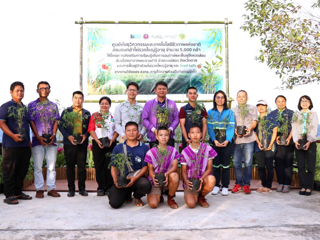 สวทช. จับมือ โครงการส่งเสริมการเรียนรู้เพื่อการอนุรักษ์ฯ จังหวัดตาก เดินหน้าฟื้นฟูป่าและยกระดับเศรษฐกิจชุมชน ส่งมอบไผ่รวกใหญ่ 5,000 ต้น และ Seed Balls กว่า 2,500 ลูก