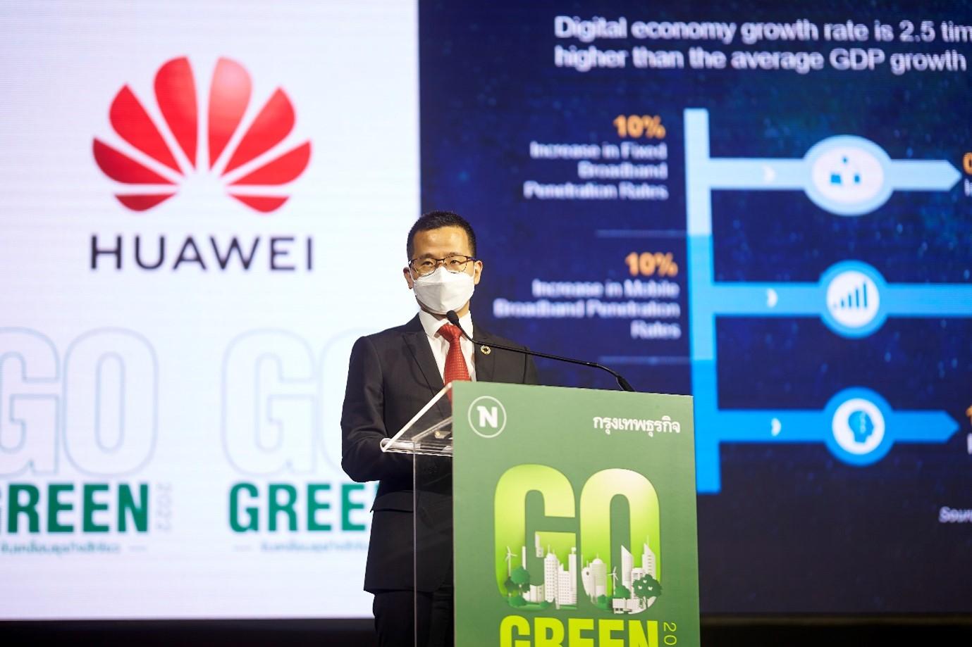 สำหรับในตลาดประเทศไทย นายอาเบล เติ้ง ประธานกรรมการบริหาร บริษัท หัวเว่ย เทคโนโลยี่ (ประเทศไทย) จำกัด มองว่าการพัฒนาสีเขียวจะเป็นการช่วยส่งเสริมการเติบโตทางเศรษฐกิจ ในขณะเดียวกันก็เป็นการรับประกันความยั่งยืนของทรัพยากรธรรมชาติและความเป็นอยู่ที่ดีของสังคมไปพร้อมกัน เขาได้เน้นย้ำว่าการเปลี่ยนผ่านเชิงดิจิทัล (Digitalization) คือกุญแจสำคัญในการฟื้นตัวและการเติบโตของประเทศไทยและประเทศอื่นๆ ทั่วโลก โดยในอนาคตเทคโนโลยีดิจิทัล ได้แก่ 5G, คลาวด์และ AI จะเป็นปัจจัยหลักในการผลักดันการเติบโตทางเศรษฐกิจ ซึ่งนอกจากเทคโนโลยีจะมีบทบาทสําคัญในการขับเคลื่อนเศรษฐกิจดิจิทัลแล้ว โครงสร้างพื้นฐานดิจิทัลยังเป็นรากฐานที่สำคัญในการพัฒนาไปสู่สังคมคาร์บอนต่ำ และเป็นกุญแจสําคัญสําหรับการพัฒนาที่ยั่งยืนของประเทศไทย ถึงขั้นที่สามารถกล่าวได้ว่าหากไม่มีดิจิทัล ก็ไม่มีความยั่งยืน