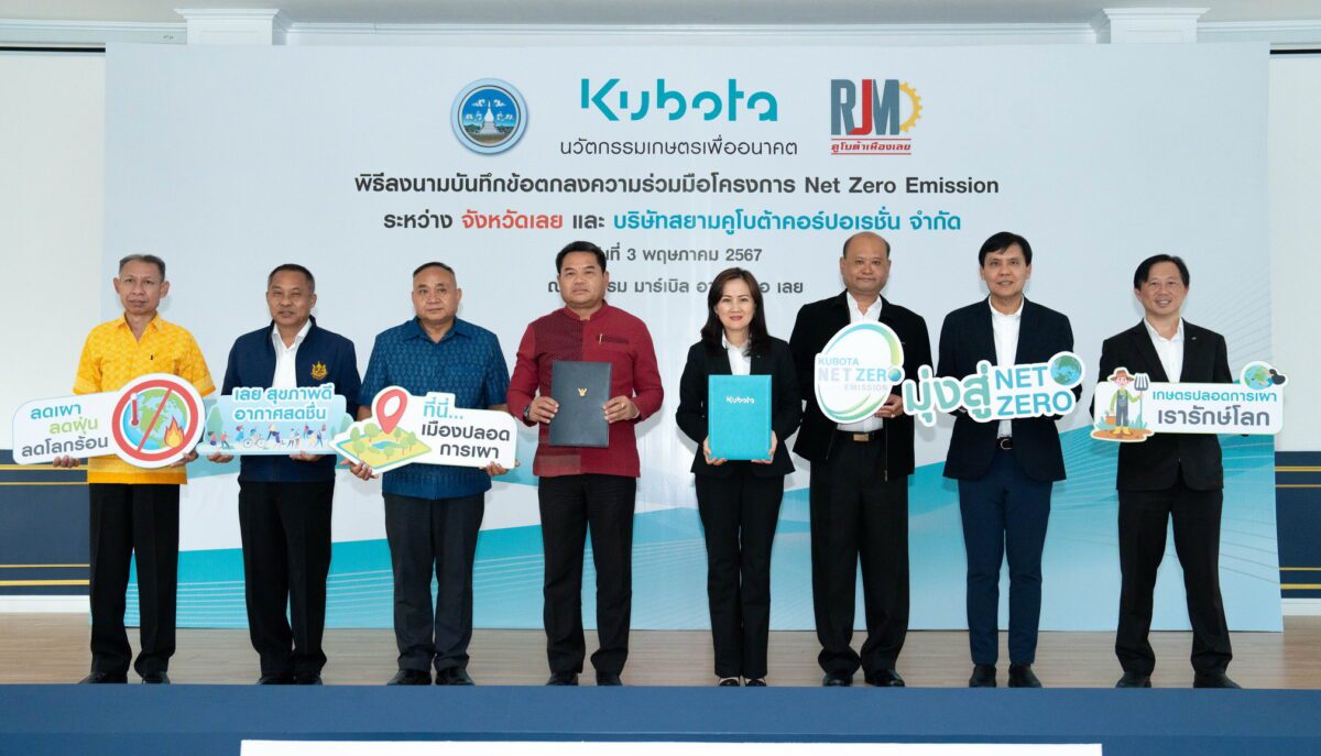 จังหวัดเลย มีความยินดีเป็นอย่างยิ่งที่ทาง บริษัทสยามคูโบต้าคอร์ปอเรชั่น จำกัด ได้เล็งเห็นความสำคัญในการดำเนินโครงการและคัดเลือกจังหวัดเลยในการทำบันทึกข้อตกลงความร่วมมือดำเนินโครงการ Net Zero Emission โดยได้มีข้อตกลงร่วมกันที่ทั้งสองฝ่ายต่างมีเจตนารมณ์เดียวกัน ในการรณรงค์และส่งเสริมให้เกษตรกรตระหนักถึงความสำคัญของเกษตรปลอดการเผา ตลอดจนผลักดันนโยบายการปล่อยก๊าซเรือนกระจกสุทธิเป็นศูนย์ ภายในปี 2593 ภายใต้แนวคิด “เมืองเลย เมืองต้นแบบปลอดการเผาสู่ Net Zero Emission”