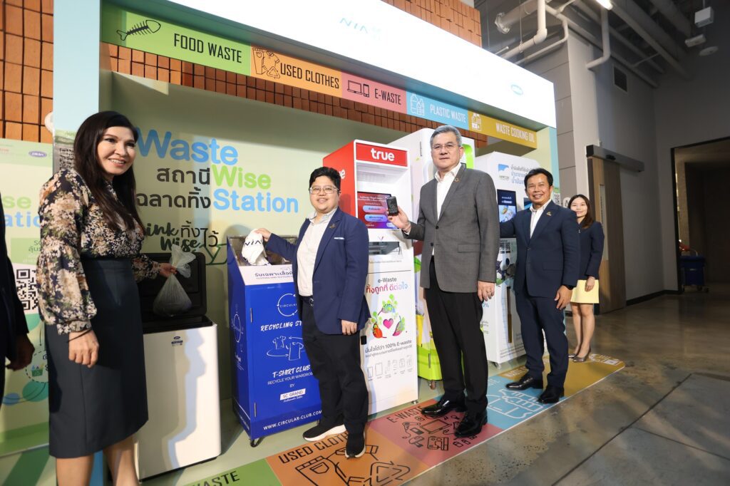 สำนักงานนวัตกรรมแห่งชาติ (องค์การมหาชน) หรือ NIA ร่วมกับภาคีเครือข่ายสถาบันการศึกษา สถาบันเทคโนโลยีพระจอมเกล้าเจ้าคุณทหารลาดกระบัง ภาคเอกชน กลุ่มบริษัท ทรู คอร์ปอเรชั่น จำกัด (มหาชน) เปิดตัว “ฉลาดทิ้ง : สถานีจัดการขยะอัจฉริยะ” (Waste Wise Station) พร้อมผลักดันการใช้ 5 นวัตกรรมจัดการขยะอย่างอัจฉริยะ ได้แก่ True E-Waste, Oklin, Circular, Refun และ Recycoex เพื่อร่วมแก้ไขปัญหาขยะล้นเมืองในพื้นที่กรุงเทพมหานคร ลดปริมาณขยะ ลดการปล่อยก๊าซเรือนกระจก และสร้างสังคมรีไซเคิลที่ยั่งยืนระดับเมือง ตลอดจนช่วยสร้างโอกาสให้กับกลุ่มธุรกิจนวัตกรรมการจัดการขยะของผู้ประกอบการไทยให้สามารถขยายโมเดลธุรกิจให้เติบโตอย่างยั่งยืน