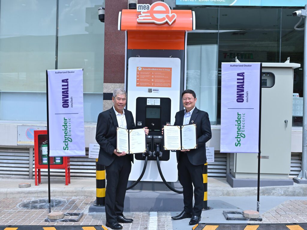 นายมงคล ตั้งศิริวิช (ขวา) ประธานกลุ่มคลัสเตอร์ ชไนเดอร์ อิเล็คทริค ดูแลประเทศไทย ลาว และเมียนมา และ นายองอาจ ปัณฑุยากร (ซ้าย) ประธานเจ้าหน้าที่บริหาร บริษัท ออนวัลล่า จำกัด ภายใต้การดูแลของบริษัท ออลล่า จำกัด (มหาชน) ได้ลงนามบันทึกข้อตกลงความร่