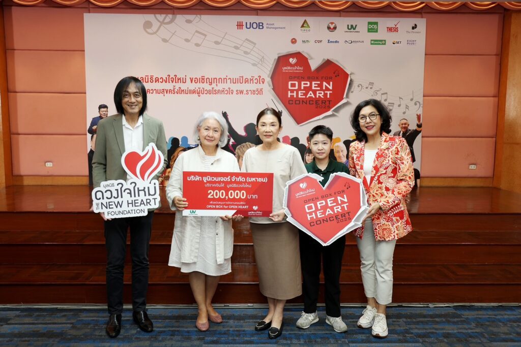 “บริษัทฯ จึงจัดโครงการ “40 ปี 40 ดวงใจใหม่” ขึ้นตั้งแต่ปี 2563 เนื่องในโอกาสครบรอบ 40 ปีการก่อตั้งบริษัท เพื่อสนับสนุนค่าใช้จ่ายในการผ่าตัดหัวใจให้กับผู้ป่วยโรคหัวใจและหลอดเลือดระยะเร่งด่วนที่ยากไร้ และขาดโอกาสในการเข้าถึงการรักษา ผ่าน “มูลนิธิดวงใจใหม่” ที่จัดตั้งโดยศัลยแพทย์หัวใจและบุคลากรทางการแพทย์ประจำหน่วยงานศัลยกรรมทรวงอก โรงพยาบาลราชวิถี และเดินหน้าจัดกิจกรรมต่างๆ ในโครงการ เพื่อให้พนักงาน รวมถึงเครือข่ายธุรกิจของกลุ่มบริษัทฯ ได้มีส่วนร่วม และสร้างจิตสาธารณะในการช่วยเหลือสังคม ไม่ว่าจะเป็น กิจกรรม UV FAMILY HEALTHY CHALLENGE เพื่อส่งเสริมสุขภาพกายและใจที่ดีของพนักงานด้วยการออกกำลังกาย พร้อมทั้งเปลี่ยนระยะทางการออกกำลังกายเป็นเงินบริจาค, การแข่งขันฟุตบอล UV Family Champion League เพื่อเชื่อมความสัมพันธ์ระหว่างพนักงานกลุ่ม UV พร้อมทั้งเปลี่ยนจำนวนประตูในคู่ชิงชนะเลิศและในการแข่งขันฟุตบอล Senior Team เป็นยอดเงินบริจาค, กิจกรรม “รับหรือให้ ก็สุขใจในวันเกิด” เพิ่มทางเลือกให้พนักงาน เปลี่ยนการรับของขวัญวันเกิดตามสิทธิ์เป็นเงินบริจาคแก่องค์กรสาธารณกุศล และล่าสุดกับการสนับสนุนการจัดคอนเสิร์ตการกุศล OPEN BOX for OPEN HEART ซึ่งเป็นกิจกรรมที่จัดขึ้นเพื่อสมทบทุนช่วยเหลือผู้ป่วยโรคหัวใจในกลุ่มด้อยโอกาสให้ได้รับการรักษาที่เร็วและทันท่วงที