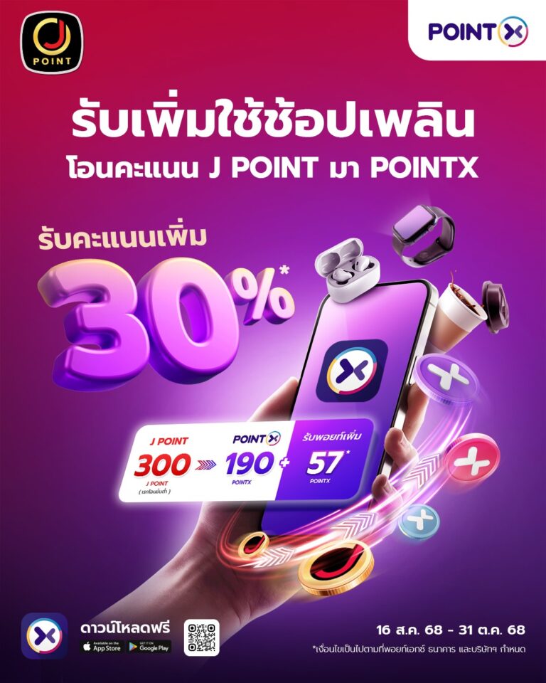 POINTX จับมือพาร์ทเนอร์ใหม่ “J POINT” เสริมแกร่งระบบสะสมคะแนน พร้อมจัดโปรโมชันพิเศษ! โอน J POINT เป็น POINTX รับคะแนนเพิ่ม 30%
