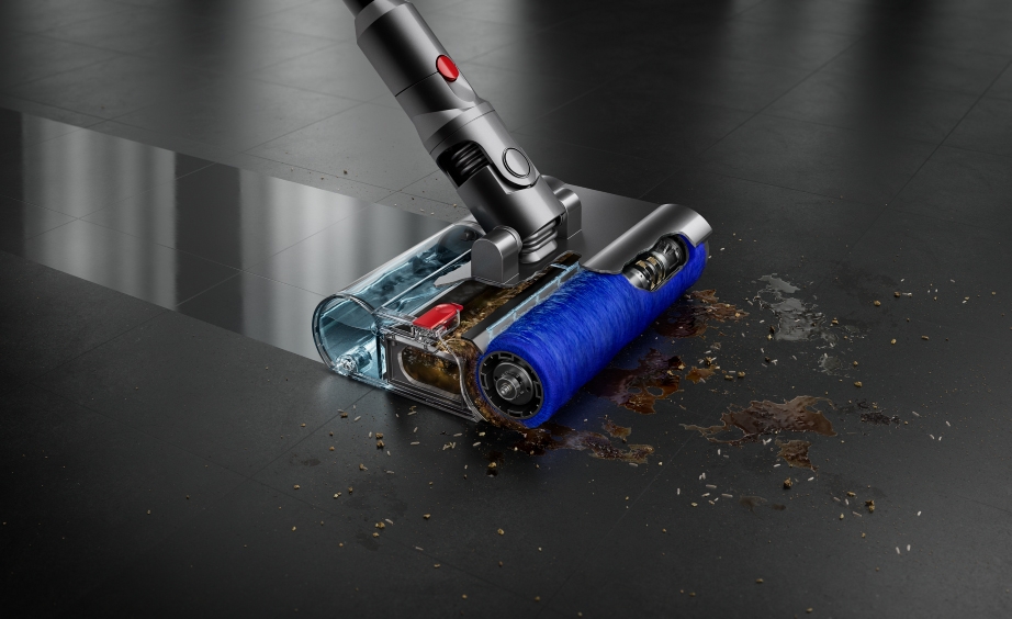 หัวดูดลูกกลิ้งแบบเปียก Dyson Submarine™ ได้รับการออกแบบทางวิศวกรรมที่แม่นยำเพื่อทำความสะอาดด้วยน้ำที่หยดลงบนลูกกลิ้งเพื่อขจัดสิ่งสกปรก คราบฝังแน่น และเศษขยะชิ้นเล็กอย่างเศษอาหารได้อย่างมีประสิทธิภาพ