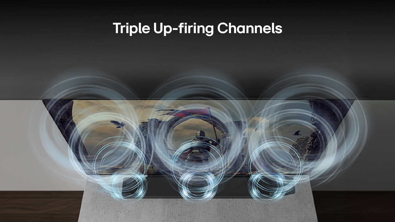 ซาวด์บาร์รุ่น SC9S มาพร้อมพลังเสียงสูงสุด 400 วัตต์ แบบ 3.1.3 ชาแนล โดยมีลำโพง up-firing สามตัวที่ช่วยให้เสียงจากช่องกลางด้านบนปล่อยเสียงพุ่งตรงออกมาเพื่อเพิ่มความชัดเจนของเสียงได้มากขึ้น รวมทั้งยังจำลองเลเยอร์เสียงชั้นกลางได้อย่างสมจริง และให้เลเยอร์เสียงรอบทิศทางที่มีความละเอียดสูง เมื่อเปิดโหมด AI Cinema หรือ AI Sound Pro จึงมอบประสบการณ์รอบทิศทางที่เต็มอิ่มเสมือนชมในโรงภาพยนตร์