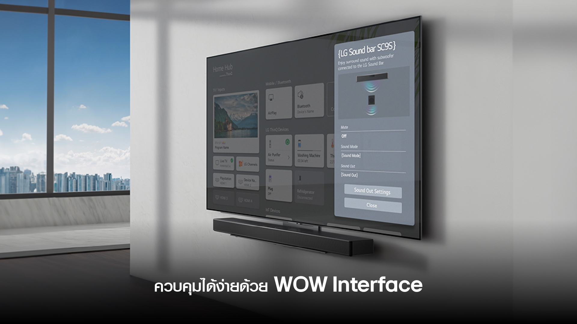 แอลจียังออกแบบอินเทอร์เฟซให้ควบคุมซาวด์บาร์ได้อย่างสะดวกจากหน้าจอทีวี เพียงใช้คู่กับเมจิกรีโมทก็สามารถปรับระดับเสียง ตรวจสอบสถานะการเชื่อมต่อ และเลือกโหมดเสียงผ่านเมนูบนหน้าจอได้ทันที เพื่อมอบประสบการณ์ใช้งานที่ง่ายและสะดวก ตามสโลแกน “Life’s Good”