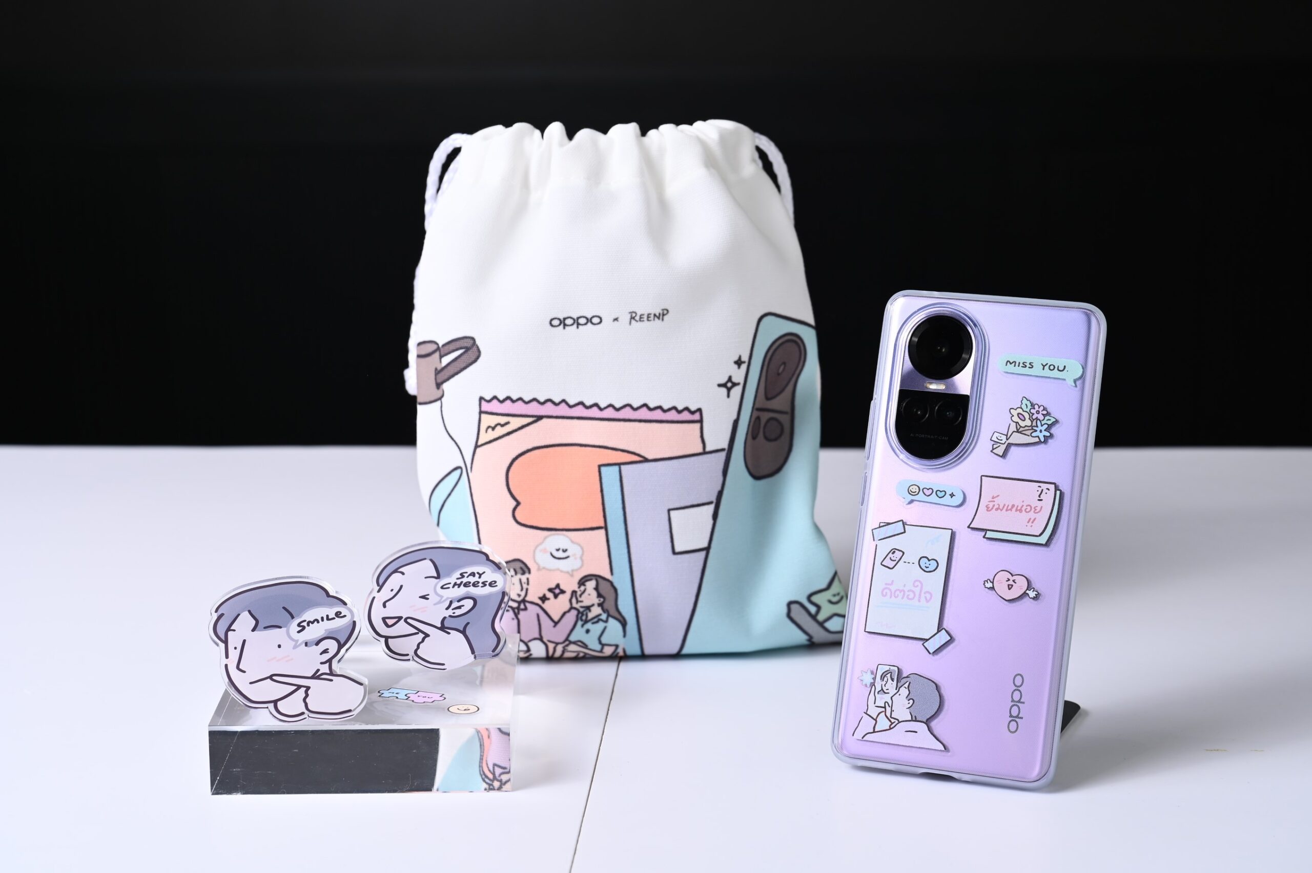 และในการมาคอลแลปกับ OPPO Reno10 Series 5G ในครั้งนี้ได้มาพร้อมกับ OPPO Reno10 Series 5G x ReenP Special Gift Set คอลเลกชั่นพิเศษที่ประกอบไปด้วยเคสใส, สติกเกอร์สุดชิคไว้ตกแต่งเคสเพิ่มพลังบวกแก่คนใช้, Griptok คู่แทนคำพูดสุดน่ารัก, พวงกุญแจลายมินิมอลที่มาพร้อมกิมมิคเก๋ๆ รวมกันในถุงผ้าดีไซน์สุดคิ้วท์ที่อัดแน่นไปด้วยความน่ารัก