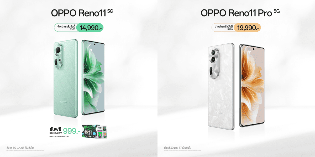 OPPO Reno11 5G และ OPPO Reno11 Pro 5G สมาร์ตโฟนถ่ายคนอย่างโปร วางจำหน่ายแล้วในราคา 14,990 บาท และ OPPO Reno11 Pro 5G วางจำหน่ายในราคา 19,990 บาท และพิเศษเมื่อซื้อผ่านผู้ให้บริ