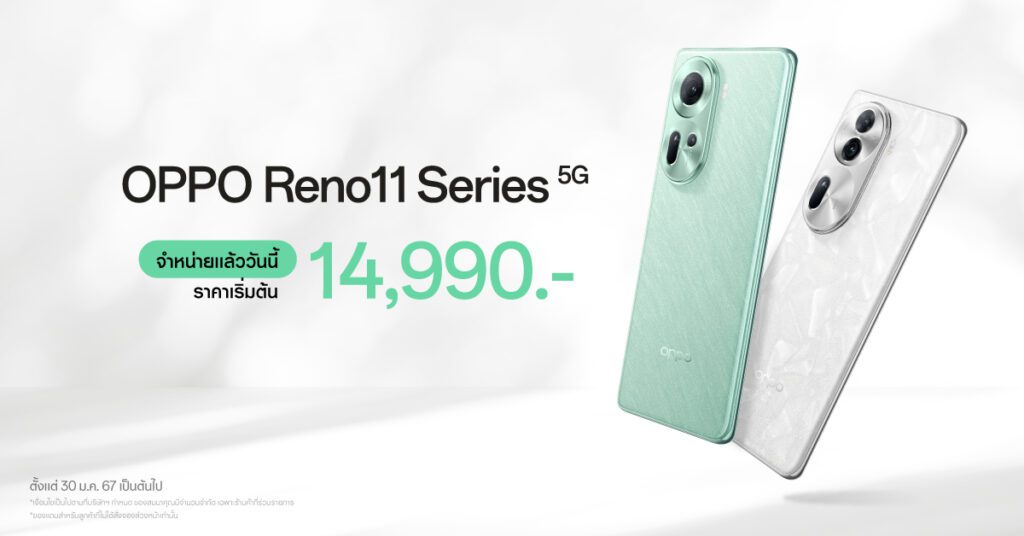 ออปโป้ ไทยแลนด์ ประกาศวางจำหน่าย “OPPO Reno11 5G” และ “OPPO Reno11 Pro 5G” อย่างเป็นทางการในประเทศไทย สมาร์ตโฟนถ่ายคนอย่างโปรรุ่