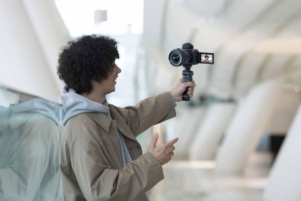 กล้อง ZV-E1 เป็นกล้อง VLOG ที่ได้รับการออกแบบมาให้ใช้งานง่าย ด้วยขนาดกะทัดรัดและน้ำหนักเบาที่สุดในโลก มาพร้อมเซ็นเซอร์รับภาพแบบ Full Frame Black-illuminated CMOS Exmor R™ และความสามารถในการเปลี่ยนเลนส์ได้47 พร้อมมอบความคล่องตัวให้กับ Vloggers สามารถแสดงออกได้อย่างสร้างสรรค์และเป็นธรรมชาติ นอกจากนี้ยังมาพร้อมการป้องกันฝุ่นและกันความชื้น48 ด้วยการซีลรอบปุ่มและแป้นหมุนทั้งหมด โดยกล้อง ZV-E1 สามารถใช้งานได้ด้วยมือเดียวได้ ทั้งยังสามารถใช้งานร่วมกับอุปกรณ์เสริมอย่าง Shooting Grip(GP-VPT2BT)49 พร้อมรีโมทควบคุมไร้สายได้เป็นอย่างดี
