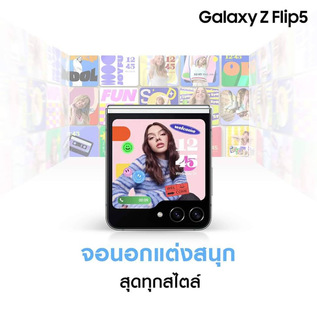 จอด้านนอกของ Galaxy Z Flip5 รองรับการใช้งานที่หลากหลาย ทำให้ไม่ต้องคอยเปิดจอพับหลายรอบ อีกทั้งยังพร้อมสำหรับการถ่ายรูปในรูปแบบ Hand-Free Flex Cam ไม่ต้องถือเอง ไม่ต้องง้อแฟนหรือคนรอบข้างอีกต่อไป และรูปที่ได้ก็ยังคงสวยเป๊ะทุกมุมอีกทั้งยังทำให้ผู้ใช้งานสามารถใช้โหมดการถ่ายภาพได้สนุกสนานมากยิ่งขึ้น
