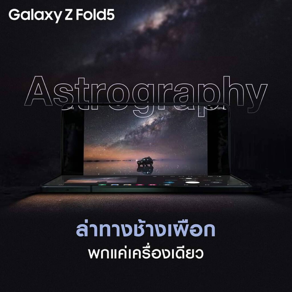 Galaxy Z Fold5 ยังมาด้วยกล้องด้านนอกเป็นแบบ 3 กล้องทั้ง Wide, Ultra และ Telephoto แต่การใช้งานนั้นดีขึ้นด้วยชิปเซ็ตประสิทธิภาพสูงด้วย Snapdragon 8 Gen 2 ทำให้ผลลัพธ์ภาพถ่ายและวิดีโอดีขึ้น จนถึงการใช้งานขั้นสุดอย่างการถ่าย Astrography หรือ การถ่ายกลุ่มดาวในกลางคืน ซึ่งต้องอาศัยประสิทธิภาพของกล้องที่สูง ด้วยฟีเจอร์ Expert RAW ที่สามารถปรับตั้งค่าต่างๆ ได้เสมือนกล้องโปร และเป็นตัวช่วยในการถ่ายภาพความสวยงามของดวงดาวในยามค่ำคืนได้ชัดเจนยิ่งขึ้น ขาตั้งกล้องไม่ต้องแบกอีกต่อไปก็ตั้งถ่ายได้แบบชิลๆ