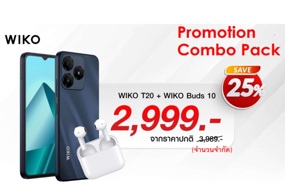 WIKO T20 พร้อมวางจำหน่ายแล้ววันนี้ ที่ร้านตัวแทนจำหน่าย ร้านค้าพันธมิตร ของ วีเอสที อีซีเอส (ประเทศไทย) กว่า 5,500 ร้านค้า ทั่วประเทศ และแพลตฟอร์มออนไลน์ที่เข้าร่วมรายการ ในราคา 2,999 บาท เพื่อเป็นการต้อนรับการกลับมาของ WIKO พิเศษ แถมฟรี หูฟังทรูไวเลส WIKO Buds 10 มูลค่า 799 บาท (จำนวนจำกัด) มั่นใจในการรับประกันสินค้านานถึง 1 ปีเต็ม และบริการหลังการขายที่อำนวยความสะดวกพร้อมดูแลผู้บริโภคถึงหน้าประตูบ้าน (Door-to-Door Service) ในเขตกรุงเทพฯ และปริมณฑล