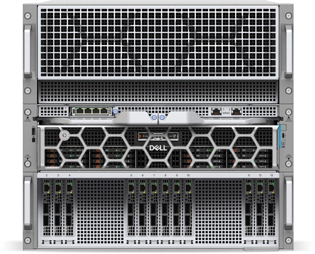 - Dell PowerEdge XE9712 มาพร้อม NVIDIA GB300 NVL72 ที่ให้ประสิทธิภาพในระดับแร็คเพื่อการฝึกโมเดล AI และสามารถวิเคราะห์เหตุผลเพื่ออนุมานผลลัพธ์ (reasoning inference) ได้มากขึ้นถึง 50 เท่า และให้อัตราการรับส่งข้อมูลเร็วขึ้นถึง 5 เท่า ซึ่งเทคโนโลยี Dell PowerCool ใหม่ ทำให้แพลตฟอร์มนี้ช่วยธุรกิจเพิ่มพลังประมวลผลได้มีประสิทธิภาพมากขึ้น