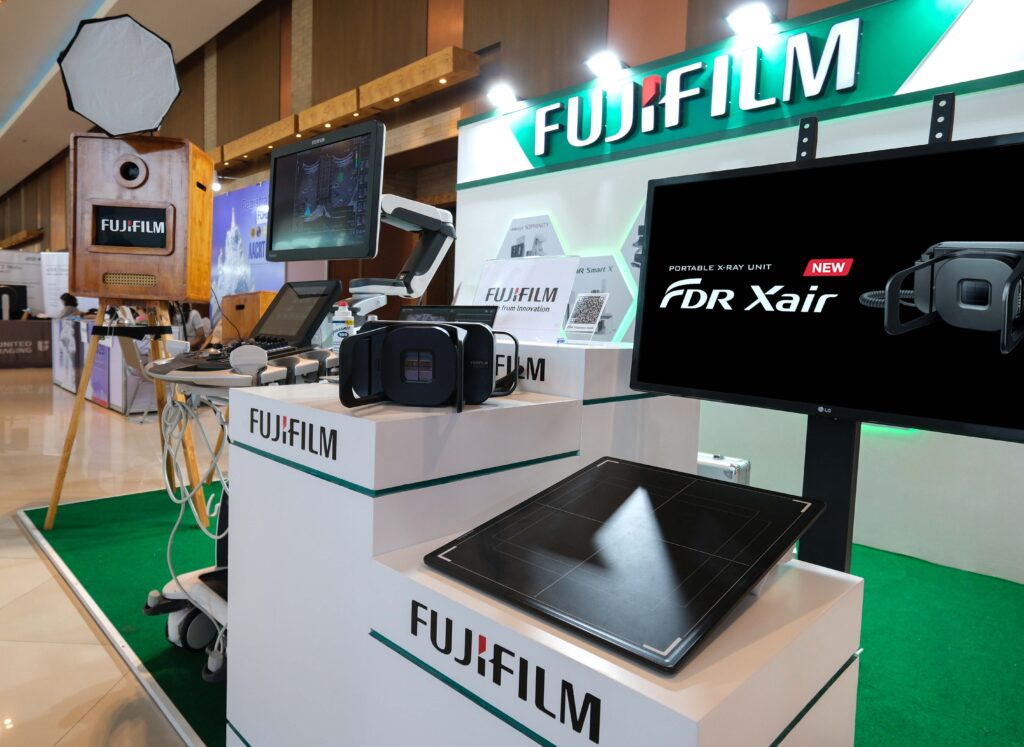 ภายในงาน ฟูจิฟิล์ม จัดแสดงนวัตกรรมวินิจฉัยภาพทางการแพทย์ล่าสุด ทั้งเครื่องเอกซเรย์แบบพกพารุ่น FDR Xair ที่โดดเด่นด้วยน้ำหนักเพียง 3.5 กิโลกรัม สามารถนำไปให้บริการทางการแพทย์แก่ประชาชนได้ทุกที่ โดยเฉพาะการออกหน่วยแพทย์เคลื่อนที่ในพื้นที่ห่างไกล ช่วยลดความเหลื่อมล้ำในการเข้าถึงการตรวจคัดกรองโรค มาพร้อมระบบ AI ช่วยคัดกรองวัณโรคและรอยโรคในปอดได้อย่างแม่นยำ