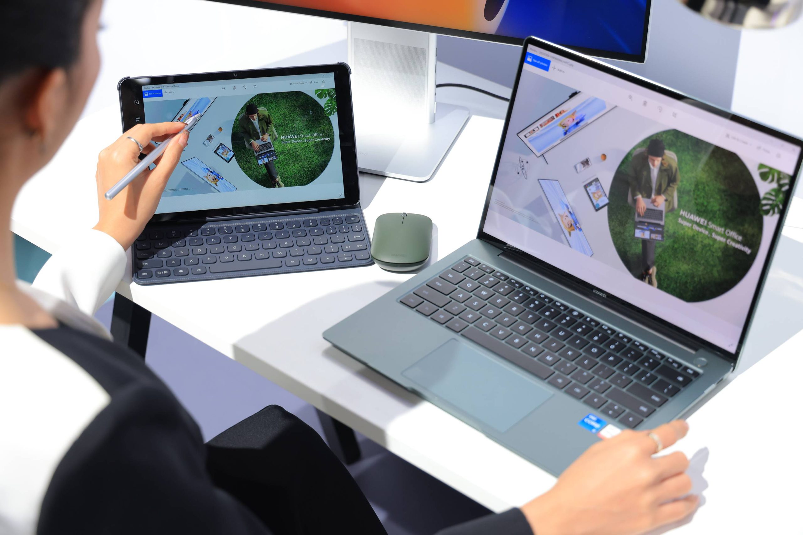 - Super Co-creation ร่วมกับ HUAWEI MatePad โดยทำงานแบบ 2 จอที่แสดงเนื้อหาเดียวกัน (Mirror Mode) แบบเนื้อหาแตกต่างกัน (Extend Mode) และเปิดข้อมูลข้ามดีไวซ์จากเครื่องหนึ่งบนโปรแกรมของอีกเครื่องหนึ่ง (Collaborate Mode) โดยใช้คีย์บอร์ด และเม้าส์ของแล็ปท็อปในการควบคุมได้อย่างง่ายดาย จะแชร์หน้าจอทำงานกับเพื่อนร่วมงานหรือเพื่อนร่วมชั้นเรียนก็ง่าย