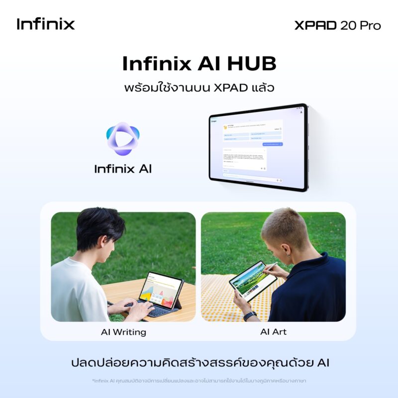 โดย Infinix XPAD 20 Pro ถือเป็นแท็บเล็ตเครือข่าย 4G รุ่นแรก ที่ใช้โครงสร้างและการออกแบบเสาอากาศแบบรวมศูนย์ ทำให้ตัวเครื่องเรียบหรูและบางเพียง 6.58 มม. แต่ยังคงความแข็งแกร่งและพรีเมียม มาพร้อมฟีเจอร์ AI อัจฉริยะ ที่ช่วยให้การใช้งานฉลาดขึ้น อาทิ AI Note-Taking สรุปและจัดระเบียบบันทึกอัตโนมัติ AI Voice Assistant ควบคุมการสั่งงานและค้นหาข้อมูลได้สะดวก AI Optimization ปรับประสิทธิภาพการทำงานและประหยัดพลังงานอัตโนมัติ