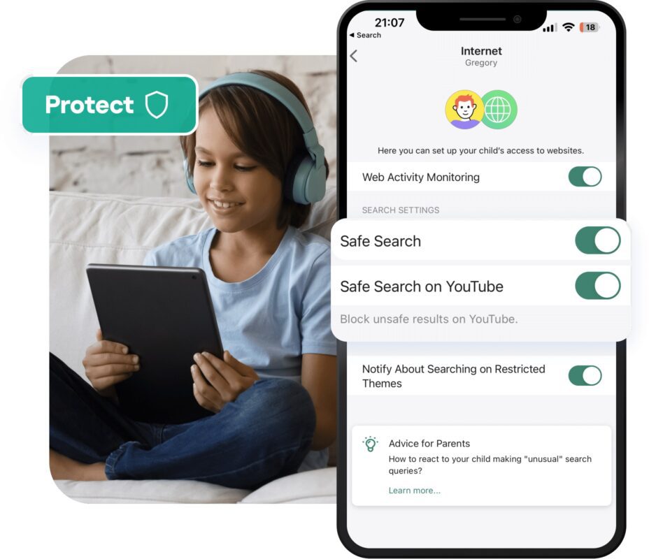 ใช้แอปการเลี้ยงลูกแบบดิจิทัล เช่น Kaspersky Safe Kids เพื่อปกป้องเด็กๆ ทั้งทางออนไลน์และออฟไลน์ จัดการเวลาหน้าจอ บล็อกเนื้อหาที่ไม่เหมาะสม และติดตามตำแหน่งที่อยู่เพื่อความอุ่นใจที่มากขึ้น