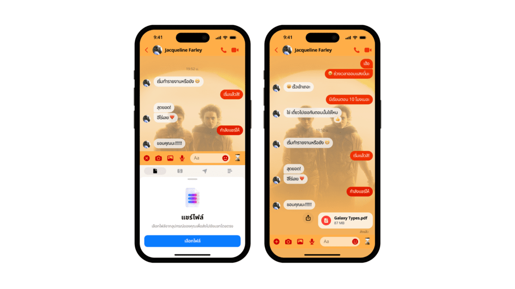 ผู้ใช้ไม่จำเป็นต้องพึ่งพาอีเมลในการส่งไฟล์ขนาดใหญ่อีกต่อไป ขณะใช้งาน Messenger ผู้ใช้สามารถเลือกปุ่มเครื่องหมายบวก ‘+’ และเลือกไฟล์ที่มีขนาดสูงสุด 100MB เพื่อแชร์ระหว่างการสนทนาผ่านการแชท โดยฟีเจอร์ดังกล่าวสามารถรองรับไฟล์ได้หลากหลายรูปแบบ ไม่ว่าจะเป็น Word, PDF, Excel, และ ZIP