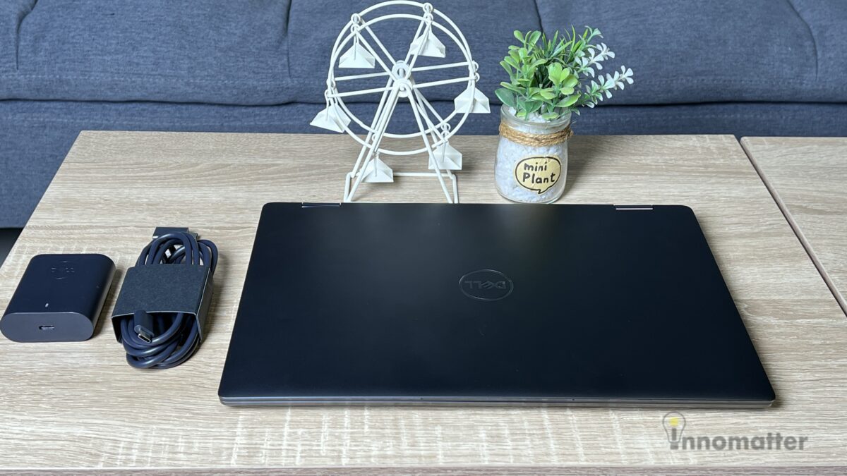 Dell Latitude 9450 2-in-1 ตัวนี้มาในสี Magnetite ซึ่งทำให้ดูหรูหราและมีความเป็นเมทัลลิคอยู่ในตัว ตัวเครื่องส่วนฝาและที่วางมือทำมาจากอลูมิเนียมทำให้มีความแข็งแรงและความรู้สึกพรีเมี่ยมทันทีที่ได้สัมผัส ตัวเครื่องมีน้ำหนักเพียง 1.5 กิโลกรัม ถือว่าเบามากสำหรับโน้ตบุ๊กโลหะทั้งเครื่องที่มีหน้าจอสัมผัสแบบกระจก แถมอะแดปเตอร์ที่มากับเครื่องก็เล็กและเบามาก ทำให้พกพาสะดวกสุดๆ