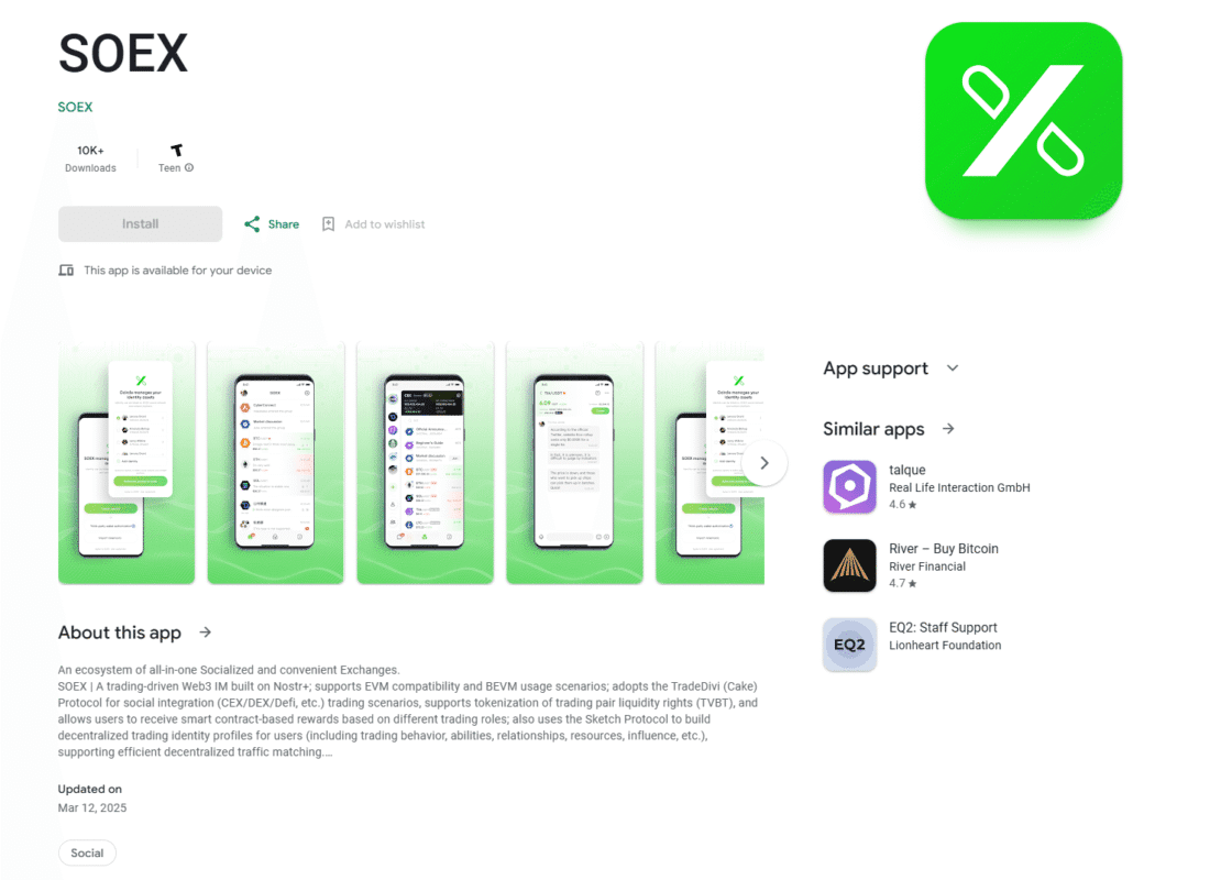 แอปที่อ้างว่าแลกเปลี่ยนคริปโตชื่อ SOEX บน Google Play