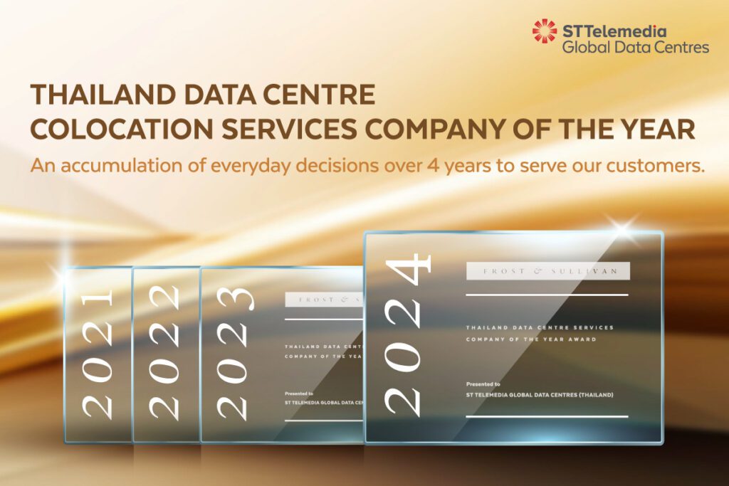 ฟรอสต์ แอนด์ ซัลลิแวน ได้วิเคราะห์อุตสาหกรรมผู้ให้บริการโคโลเคชันดาต้าเซ็นเตอร์ และจากผลการวิเคราะห์ ฟรอสต์ แอนด์ ซัลลิแวนมอบรางวัล Thailand Data Center Colocation Services Company of the Year ประจำปี 2024 ให้แก่ เอสที เทเลมีเดีย โกลบอล ดาต้าเซ็นเตอร์ ประเทศไทย (STT GDC Thailand) ซึ่งเป็นบริษัทร่วมทุนระหว่าง บริษัท เฟรเซอร์ส พร็อพเพอร์ตี้ ลิมิเต็ด (FPL) ผู้นำแพลตฟอร์มอสังหาริมทรัพย์ครบวงจร และ เอสที เทเลมีเดีย โกลบอล ดาต้าเซ็นเตอร์ หรือ (STT GDC) ผู้นำบริการดาต้าเซ็นเตอร์ และในเครือของ เทมาเส็ก โฮลดิงส์ ลิมิเต็ด ซึ่งมี ST Telemedia เป็นผู้ถือหุ้น โดยให้บริการโซลูชันดาต้าเซ็นเตอร์ Best-in-Class แบบครบวงจร เพื่อช่วยให้ลูกค้าสามารถเตรียมพร้อมและปรับตัวกับการเปลี่ยนแปลงต่าง ๆ ได้อย่างคล่องตัว พร้อมปรับความต้องการที่เพิ่มขึ้นในด้านการวางเซิร์ฟเวอร์ร่วม หรือ โคโลเคชัน (Colocation) รวมถึงเครือข่ายการเชื่อมต่อ และการให้บริการสนับสนุน โดยดาต้าเซ็นเตอร์ของ STT GDC Thailand เปิดกว้างและสามารถรองรับการเชื่อมต่อจากทุกเครือข่ายผู้ให้บริการ ช่วยให้บริษัทฯ สามารถขับเคลื่อนอนาคตดิจิทัลที่ยั่งยืนได้ผ่านการนำเสนอโซลูชันโคโลเคชันที่ยืดหยุ่นและรองรับการเติบโตของทุกธุรกิจ